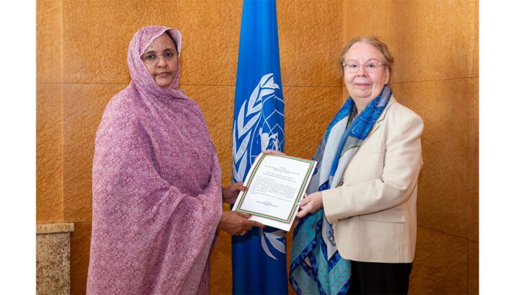 قدمت سعادة السفيرة عيشه فال فرجس، اليوم الأربعاء، أوراق اعتمادها إلى السيدة تاتيانا فالوفايا، وكيلة الأمين العام للأمم المتحدة والمديرة العامة لمكتب الأمم المتحدة في جنيف، كسفيرة فوق العادة وكاملة السلطة للجمهورية الإسلامية الموريتانية لدى الأمم المتحدة والمنظمات الدولية الأخرى في جنيف.