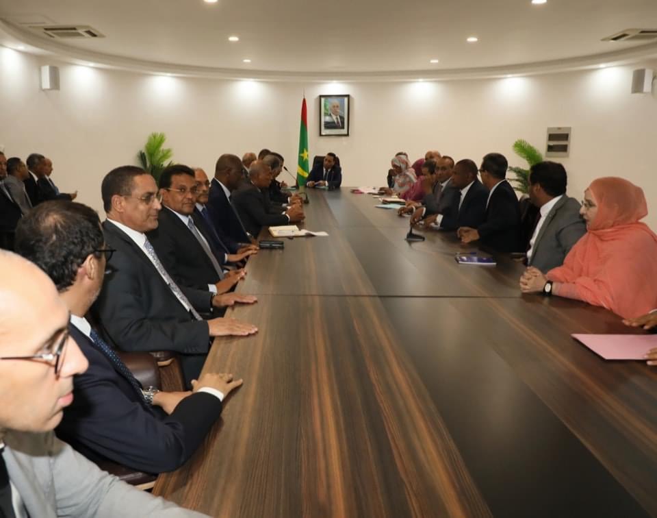 الحوادث - اجتمع الوزير الأول السيد المختار ولد أجاي الاثنين في الوزارة الأولى بأعضاء المكتب التنفيذي للاتحاد الوطني لأرباب العمل الموريتانيين، برئاسة السيد محمد زين العابدين ولد الشيخ أحمد؛ رئيس الاتحاد الوطني لأرباب العمل الموريتانيين.وقد خصص اللقاء لتفعيل آليات الشراكة بين القطاعين العام والخاص.