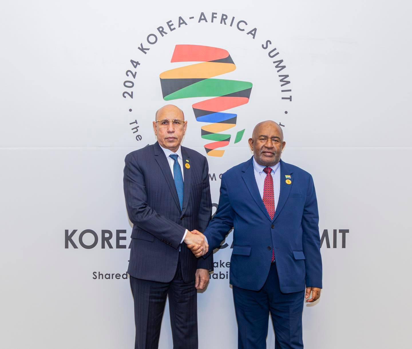 الحوادث - التقى رئيس الجمهورية، رئيس الاتحاد الإفريقي السيد محمد ولد الشيخ الغزواني، صباح اليوم الأربعاء على هامش القمة الكورية الإفريقية في يومها الثاني الخاص بتطوير قطاع الأعمال، برئيس المفوضية الإفريقية السيد موسى فكي محمد.