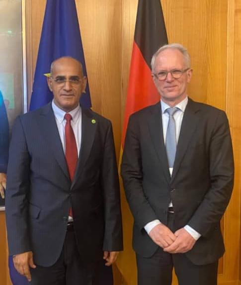 الحوادث - أجرى وزير البترول والمعادن والطاقة الناطق باسم الحكومة الدكتور الناني ولد اشروقه والوفد المرافق له اجتماع عمل هذا الصباح مع الدكتور فيليب نيمرمان، كاتب الدولة وزير في الوزارة الاتحادية للشؤون الاقتصادية وحماية المناخ بحكومة المانيا الاتحادية.