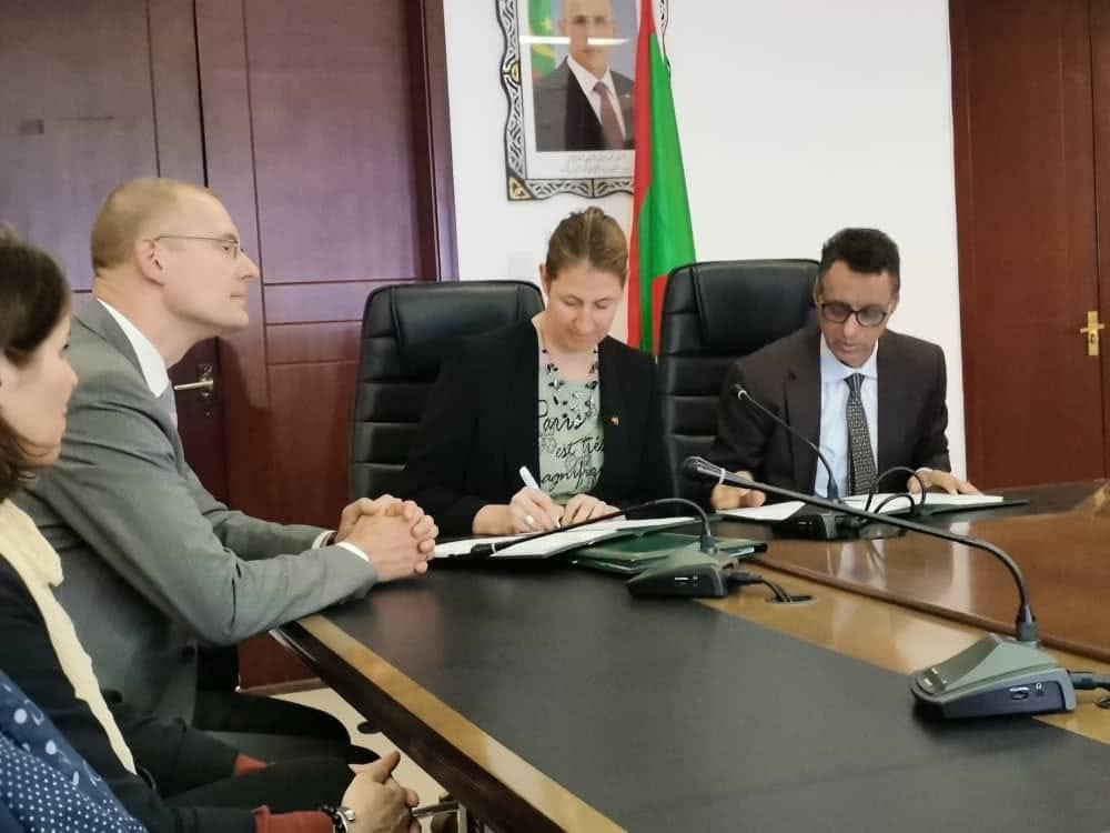الحوادث - وقع وزير الاقتصاد والتنمية المستدامة، السيد عبد السلام محمد صالح، أمس الجمعة مع الدكتوره دانيلا بيشمان، مديرة قطاع شمال إفريقيا ببنك التنمية الألماني، على اتفاق تمويل إضافي مخصص لمشروع عصرنة ميناء الصيد التقليدي في نواذيبو، بقيمة 2 مليون يورو أي مايزيد على 86 مليون أوقية.