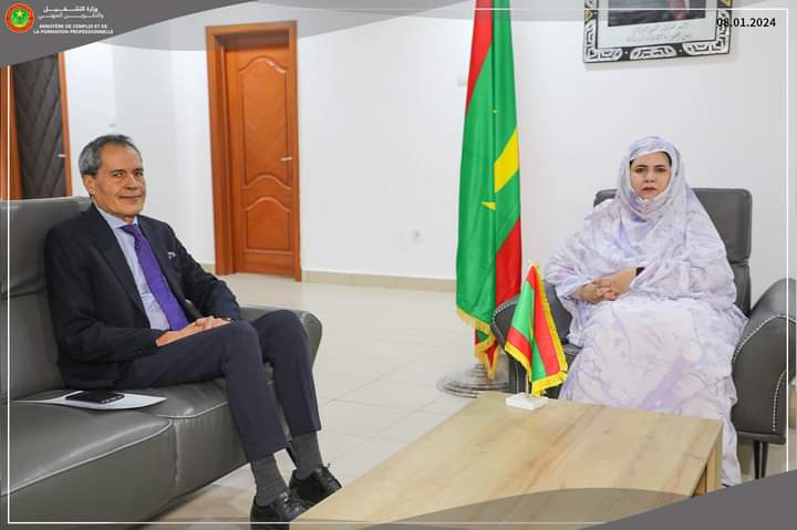 الحوادث - استقبلت وزيرة التشغيل والتكوين المهني السيدة زينب بنت أحمدناه، اليوم الإثنين بنواكشوط، سفير المملكة المغربية السيد حميد شبار.