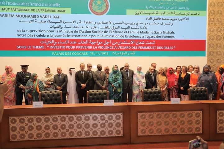الحوادث- انطلقت صباح اليوم السبت، برعاية سامية من السيدة الأولى الدكتورة مريم محمد فاضل، ووزيرة العمل الاجتماعي والطفولة والأسرة السيدة صفية انتهاه، وبحضور عدد من أعضاء الحكومة، الفعاليات المخلدة لليوم الدولي للقضاء على العنف ضد النساء والفتيات، تحت شعار: "الاستثمار من أجل مواجهة العنف ضد النساء والفتيات".