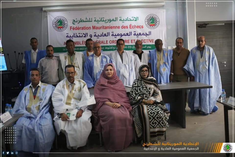 انتخب امس السبت في اجتماع عقدته الجمعية العمومية للاتحادية الموريتانية للشطرنج، بحضور اثني عشر ناديًا وممثلين عن وزارة الشبابوالرياضة واللجنة الاولمبية الوطنية والرياضة. بالإجماع لمأمورية جديدة من أربع سنوات.