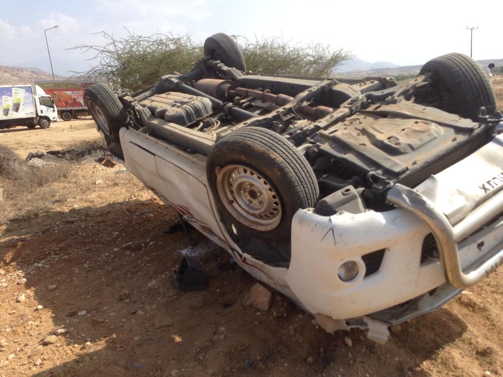 أصيب ثلاثة منقبين اثر حادث اليوم السبت بين منطقة "تفرغ زينه"ومدينة"الشامي"..وحسب مصدر تقدمي الذي نشر الخبر فإن المنقبين كانوا يستقلون سيارة "تويوتاهلكس" انقلبت عدة مرات مماتسبب في إصابة الركاب، بعضهم اصابته خطيرة والبغض خفيفة.