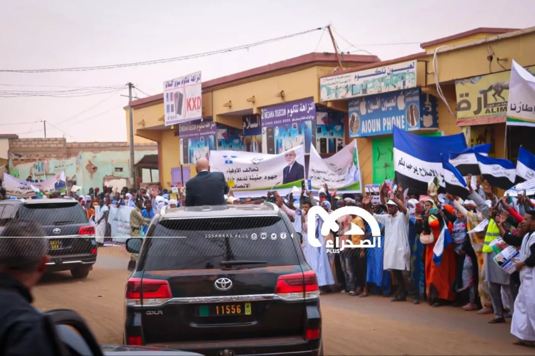 نظم سكان مدينة لعيون، اليوم، استقبالا شعبيا للرئيس محمد ولد الشيخ الغزواني، بعد وصوله في زيارة عمل للمدينة.