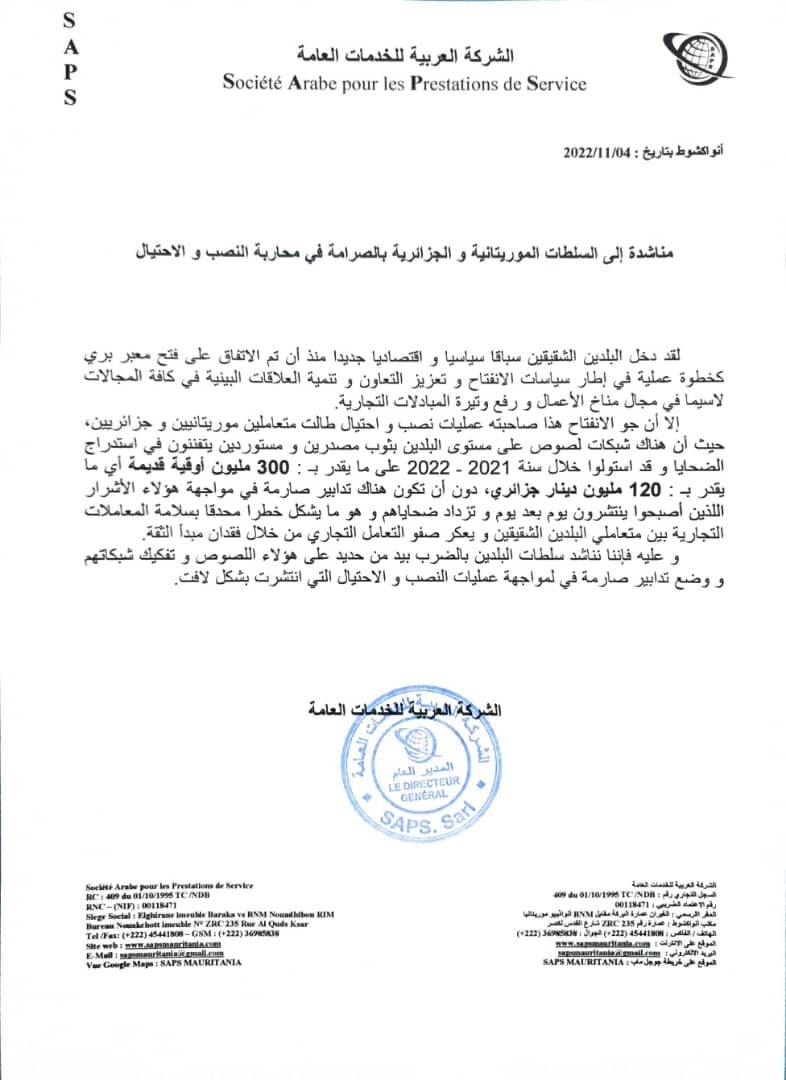 القبض على عناصر العصابة تم من قبل فرقة البحث التابعة لمفوضية الشرطة الخاصة بولاية نواكشوط الجنوبية..وذلك اثر مجموعة من البلاغات تم الإعلان عنها في مفوضيات الشرطة.
