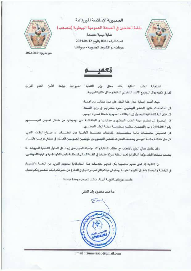 الحوادث - قال مناديب عمال شركة "موف موريتل" للاتصالات في موريتانيا انهم قرروا بدء تنفيذ إضراب جديد عن العمل لمدة شهر ابتداء من اليوم الأربعاء 03 يوليو 2022.