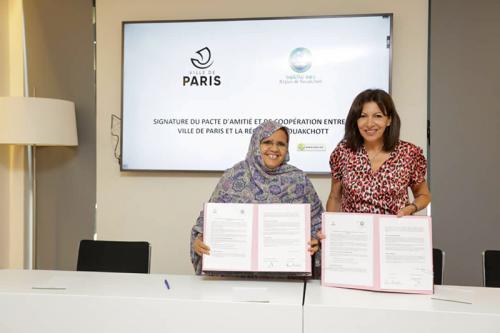 وقعت رئيسة جهة نواكشوط فاطمة بنت عبد المالك بساحل العاج اتفاقية شراكة وتعاون في مجلات الزراعة الحضرية، والتكوين المهني والتعليم العالي، والحركة الحضرية وسهولة الوصول إلى وسائل النقل العام واستدامتها مع عمدة باريس السيدة آن هيدالكو.
