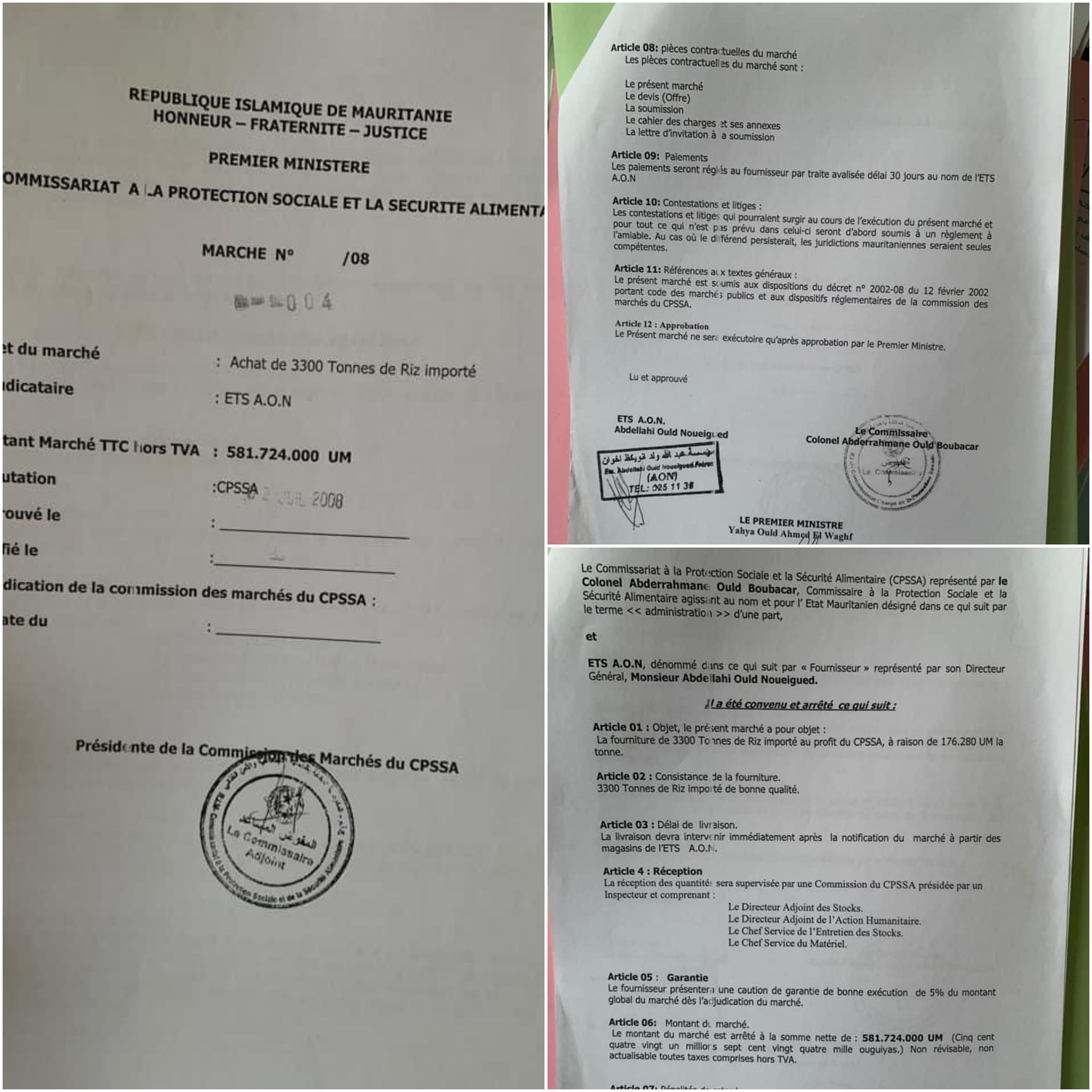 الحوادث- كشفت وثيقة نشرت على مواقع التواصل الاجتماعي على نطاق واسع صفقة بيع 3300 طن من الأرز باعتها مفوضية الأمن الغذائي لرجل الأعمال الموريتاني محمد ولد انوكظ بموافقة من رئيس الوزراء في تلك الفترة يحي ولد الوقف الوزير الأمين العام للحكومة حاليا رئيس اللجنة المشرفة على التحضير للتشاور.