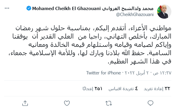 أعلنت رئاسة الجمهورية أن أوقات الدوام الرسمي في الدوائر العمومية خلال شهر رمضان المبارك، ستكون على النحو التالي: