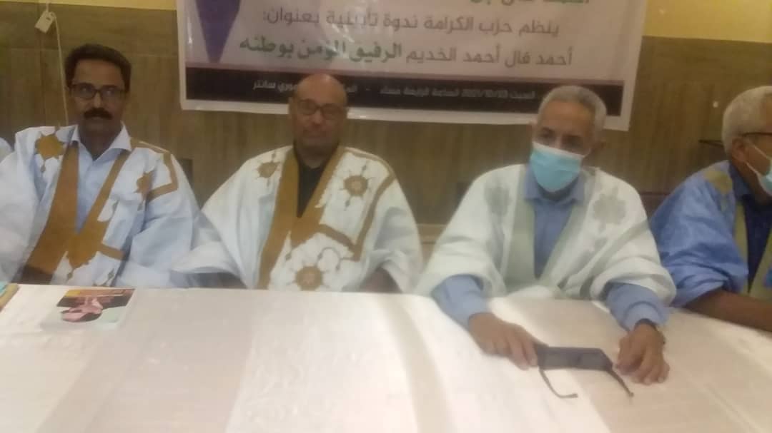 حزب الكرامة - إيجاز صحفي - نظم حزب الكرامة ندوة تأبينية للفقيد الأستاذ أحمد فال ولد أحمد الخديم نائب رئيس حزب الكرامة، مساء السبت 23/10/2021 بفندق موري سانت بالعاصمة نواكشوط