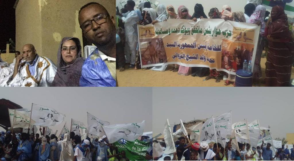 الحوادث- شارك حزب حوار بقيادة رئيسته قاله منت ميني في استقبال الرئيس محمد الشيخ العزواني بتنبدغه بولاية الحوض الشرقي اليوم الجمعة. حيث اصطف جمع كبير من أنصار الحزب على جنبات الطريق تفرغ الافتات المرحلة بقدوم الرئيس،والشعارات التي تثمن انجازاته في إطار التنمية التي غطت جميع المجالات حسب الشعارات.