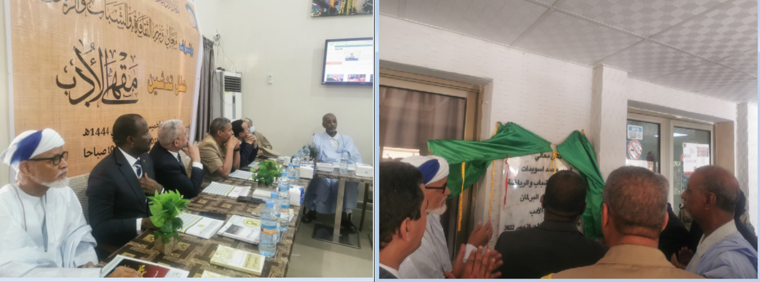 أشرف معالي وزير الثقافة والشباب والرياضة والعلاقات مع البرلمان محمد ولد اسويدات صباح اليوم الخميس بمقاطعة "تفرغ زينة" بولاية نواكشوط الغربية على افتتاح "مقهى الأدب" الأول من نوعه في تاريخ البلاد.