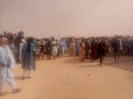 المتظاهرون تجمهروا على الشارع الرسمي قاطعين الطريق على السيارات العابرة إلى نواكشوط ، ونواذيبو.