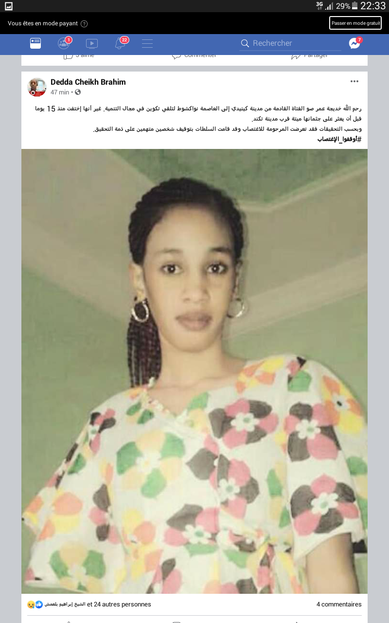 الحوادث- عثرت دورية من الحرس فجر اليوم في قطاع الميناء بولاية نواكشوط الجنوبية على فتاة مغمي عليها في الشارع العام.وحسب مصدر الحوادث فإن الدورية تجلت لإسعافها، وتأكد بعد التحقيق حول ملابسات الحالة التي عثر عليها فيها، أن الفتاة مريضة وتنتابها نوبة يغمى عليها إثرها.وقد تم تسليمها لذويها.
