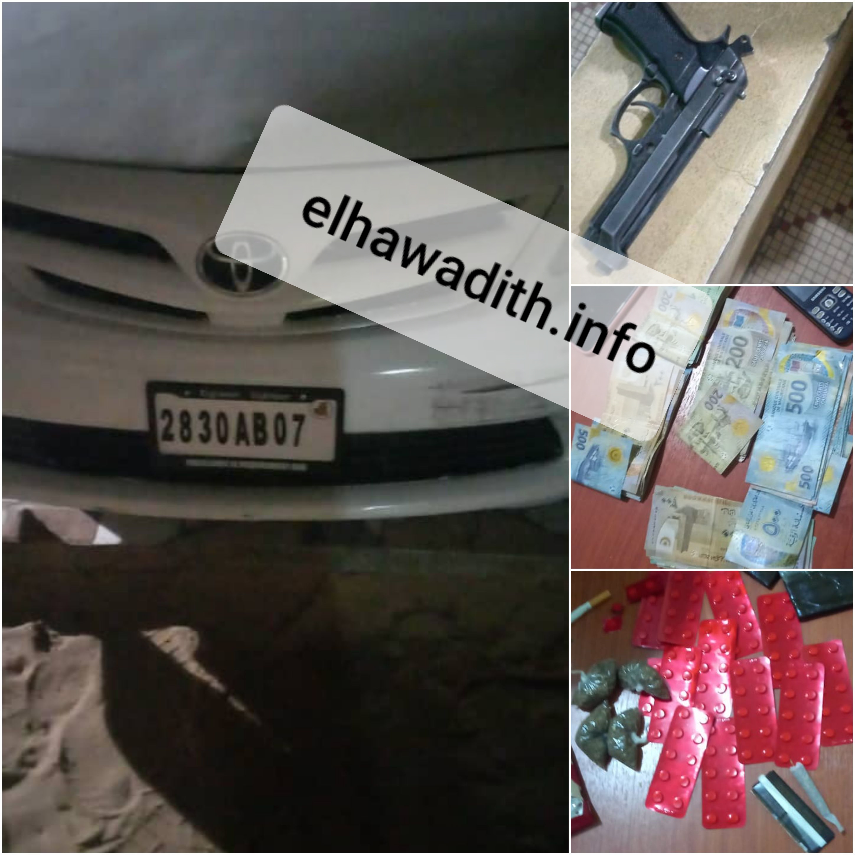 الحوادث- تمكنت الشرطة في المفوضية الخاصة للشرطة القضائية في ولاية نواكشوط الجنوبية من القبض على عصابة من اربعة أشخاص تستقل سيارة من نوع كورولا طاش (انظر الصورة).