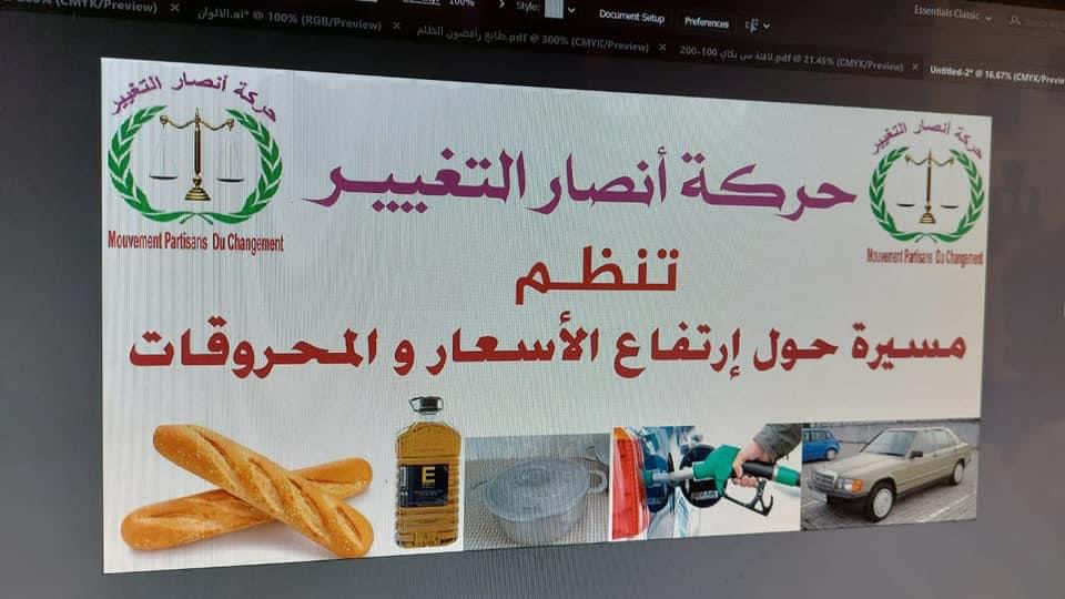 بينما حملت لا فتة شعار الحركة الغير مرخصة وإشعار بنسير تندد بارتفاع الأسعار والمحروقات..