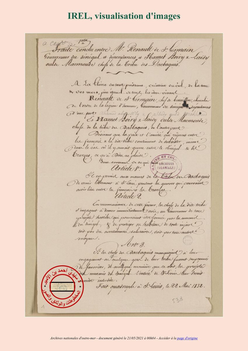 وقد تحالف أولاد خليفه مع الترارزة، وأصبحوا جزءا هاما من الإمارة، إلا أن ذلك لم يمنعهم من الحفاظ على استقلاليتهم، وإبرام الاتفاقيات التجارية مع الفرنسيين كما توضح هذه الاتفاقية.