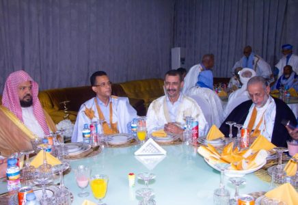 أقامت وزارة الشؤون الإسلامية والتعليم الأصلي، الليلة البارحة، حفل عشاء على شرف إمام المسجد النبوي الشريف، الشيخ أحمد بن علي الحذيفي، والوفد المرافق له، وذلك بمناسبة زيارته لموريتانيا.