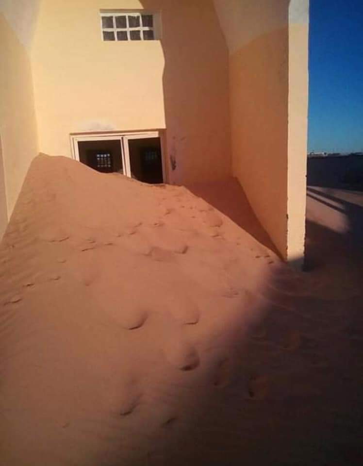 المركز الصحي تححول الى مقبرة بسبب زحف الرمال التي طغت عليه وأغرقت جميع مكوناته بما في ذلك غرفه وممراته وصالاته..