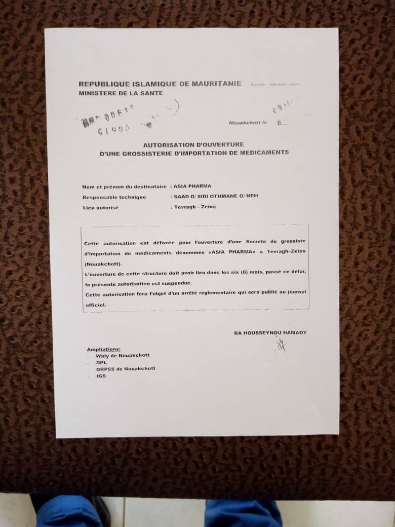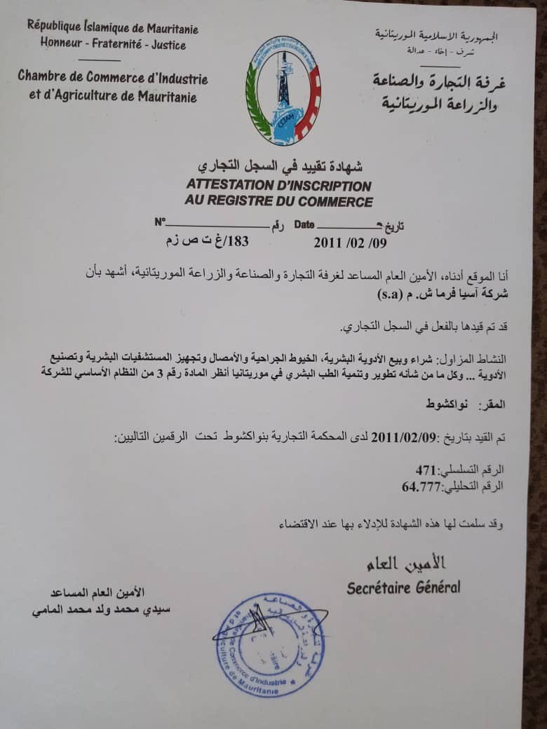 الحوادث- ماتزال الشرطة في لكصر ٢ بالإدارة الجهوية لآمن ولاية نوكشوط الغربية تحقق في الدعوى المقدمة من تاجر أدوية موريتاني ضد رجل الأعمال الأردني (آحمد عمر عقيل)مدير شركة " آسيا فارما" فرع موريتانيا والذي نقى محاميه محمد يسلم ولد الشيخ أن يكون قد احتال على التاجر الموريتاني ولد بونه، بدليل ألتوثيق الذي كان قد حرره لدى مكتب للتوثيق (انظر الصورة) يقر له بماله الذي استلمه منه مقابل الأدوية،وأن الشركة الموصوفة بالتحايل لديها جميع الوثائق القانونية التي تخول لها اعمل في التوريد(انظر صور الوثائق).