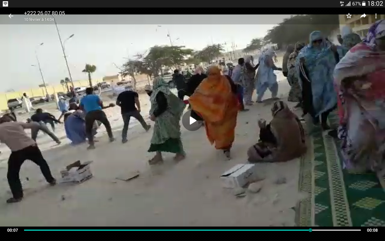 وقال المتحدث أنهم نظموا احتجاجات سلمية رفعوا فيها شعارات مناهضة لبناء الشركة في المنطقة، إلا أن والي ولاية نواذيبو أمر بتفريقهم بالقوة وضرب المسيلات عليهم. الأمر الذي امتثلت له القوة رغم أنهم لم يخترقوا النظام، ولم يتجاوزا الحدود المرسومة في الاحتجاجات السلمية..ومع ذلك هوجموا من قبل قوة أمنية، وضربوا بالقنابل المسيلة للدموع، مما عرض بعضهم للجرح، وإصابات خطيرة. وفقد من جراء الهجوم أحد الأشخاص الذين لم يشاركوا في التظاهر أصابع يده.. فيما تعرض النسوة للاختناق والجرح.