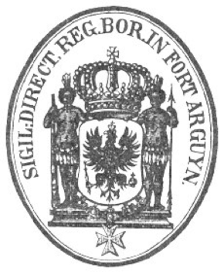 وفي أحد التقارير الألمانية حديث عن رسو هذه السفينة بميناء آرگين وكيف بدأ القادمون يوم الجمعة 5 أكتوبر 1685 بالنزول بالقلعة المدمرة، كما قسموا هدايا رمزية على السكان البيضان منها فاكهة البرتقال وبعض الشعارات المسيحية.