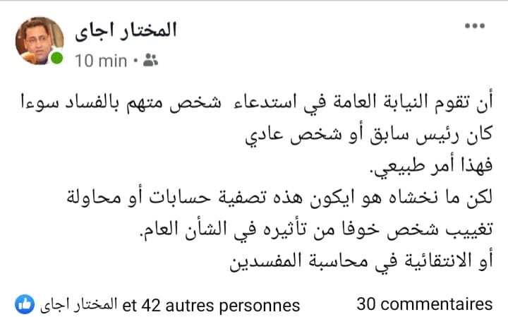 الحوادث- أثار الوزير السابق للمالية في عهد نظام محمد ولد عبد العزيز المدير الحالي لشركة المناجم اسنيم، والمشمول ضمن ملف الفساد الذي تحقق فيه شرطة الجرائم الاقتصادية، تخوشه من أن يكون التحقيق الغرض منه تصفية حسابات، أو محاولة تغييب شخص خوفا من تأثيره في الشأن العام.
