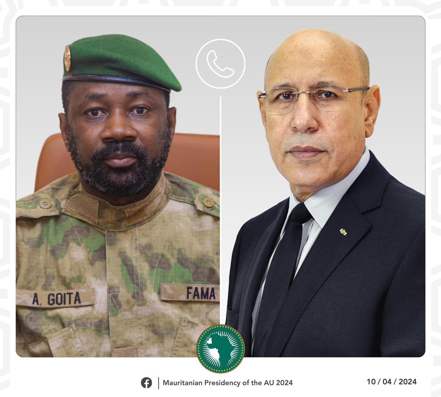 تلقى رئيس الجمهورية، رئيس الاتحاد الإفريقي، السيد محمد ولد الشيخ الغزواني، الأربعاء، اتصالا هاتفيا من نظيره المالي، السيد آسيمي كويتا.