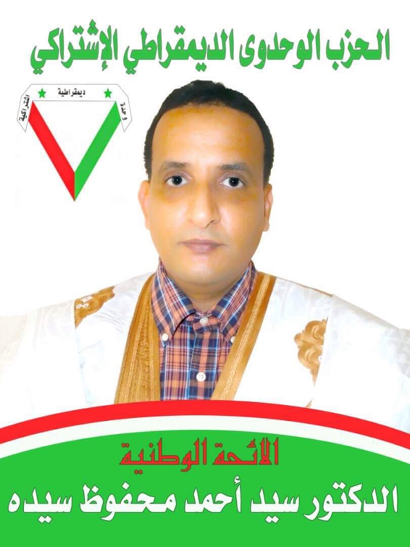 رشح حزب الوحدوي الديمقراطي الاشتراكي على رأس الائحة الوطنية الشاب الدكتورسيدي أحمد محمفوظ سيده وذلك في إطار دعم الشباب في المشاركة السياسية وحمل الهم الوطني، ويعد الشاب سيدي أحمد محفوظ سيده أحد الوجوه الشابة التي لديها غيرة على البلد، الأمر الذي جعله يقرر الترشح على رأس اللائحة الوطنية من حزب الوحدوي الديمقراطي الاشتراكي٠