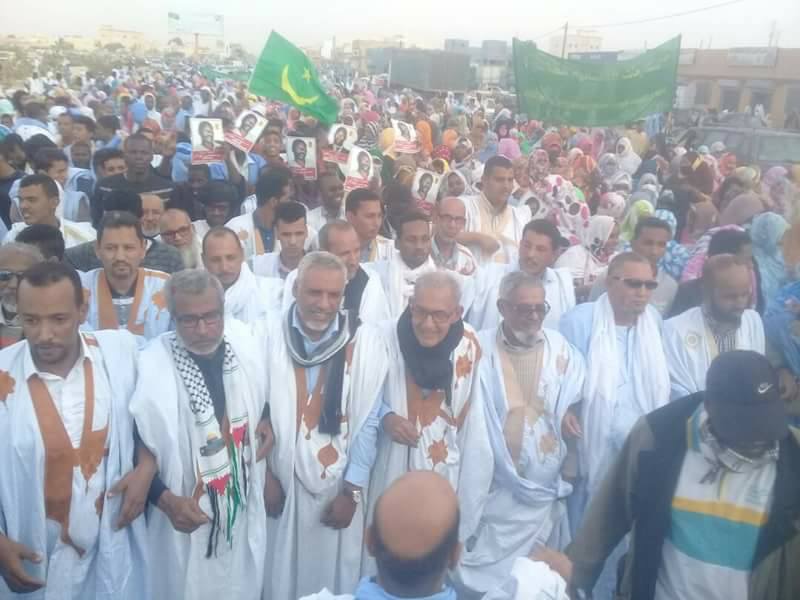 الحوادث- نظمت الأحزاب الثمانية المنضوية في المنتدى الوطني للديموقراطية،بقيادة أحمد ولد داداه رئيس حزب تكتل القوى الديمقراطي مسيرة راجلة، شارك فيها كم كبير من الجماهير، رفعت العلم الأخضر بالهلال والنجم الأصفرين، وقد جابت المسيرة شوارع العاصمة من ثلاث جهات بحرية يرفعون شعارات مختلفة٠